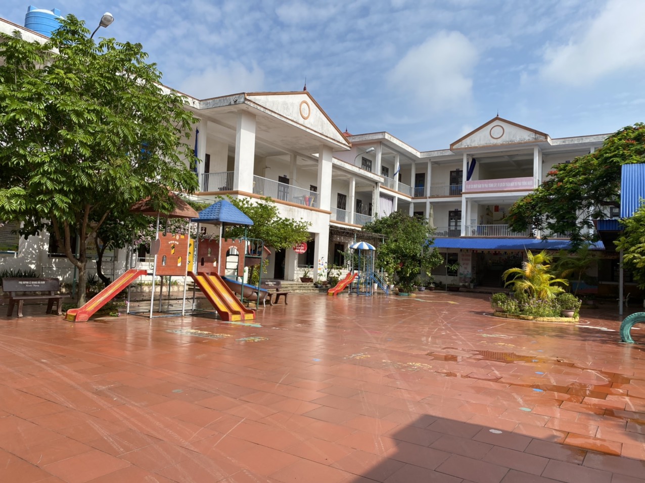 Năm học 2013-2014 nhà trường được sự quan tâm của lãnh đạo thành phố, lãnh đạo huyện, đặc biệt là sự đầu tư của dự án cảng biển đã xây dựng một ngôi trường mới và được khánh thành vào ngày 04 tháng 09 năm 2014. Trường có 2 dãy nhà cao tầng; 1 dãy 3 tầng với 12 phòng học ( Xây mới) một dãy 2 tầng nâng cấp sửa chữa. gồm phòng ban giám hiệu, phòng hội trường, phòng chức năng và bếp ăn, được đầu tư đầy đủ CSVC, trang thiết bị âm thanh loa máy cùng với thiết bị phục vụ bán trú đảm bảo có chất lượng. Diện tịch sân trường rộng, khang trang, thoáng mát, có cây xanh, cây cảnh, vườn rau và đồ chơi ngoài trời đảm bảo cho trẻ vui chơi ngoài trời, môi trường sạch đẹp, thân thiện an toàn, với tổng diện tích mặt bằng là 2370m2, Phòng học được trang bị đầy đủ CSVC phục vụ cho việc nuôi và dạy cháu đảm bảo chất lượng. Với cơ sở vật chất đã đáp ứng được nhu cầu gửi trẻ của nhân dân trên địa bàn, đảm bảo cho nhà trường thực hiện tốt nhiệm vụ chăm sóc giáo dục trẻ.