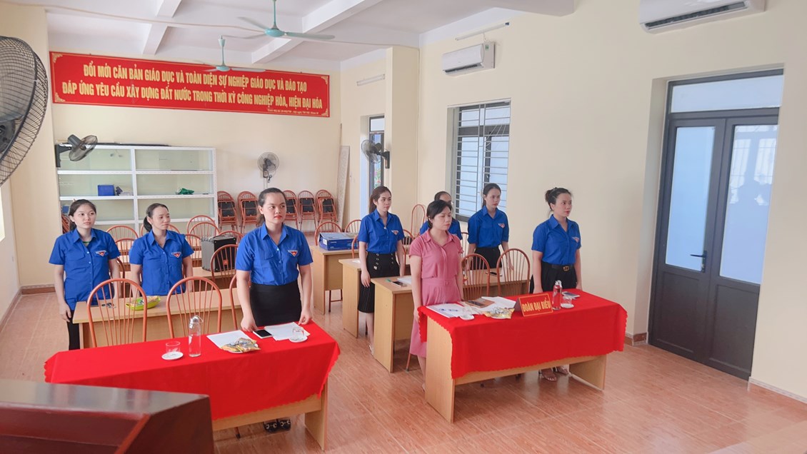 Chi đoàn làm lễ chào cờ, hát Quốc ca và Đoàn ca
