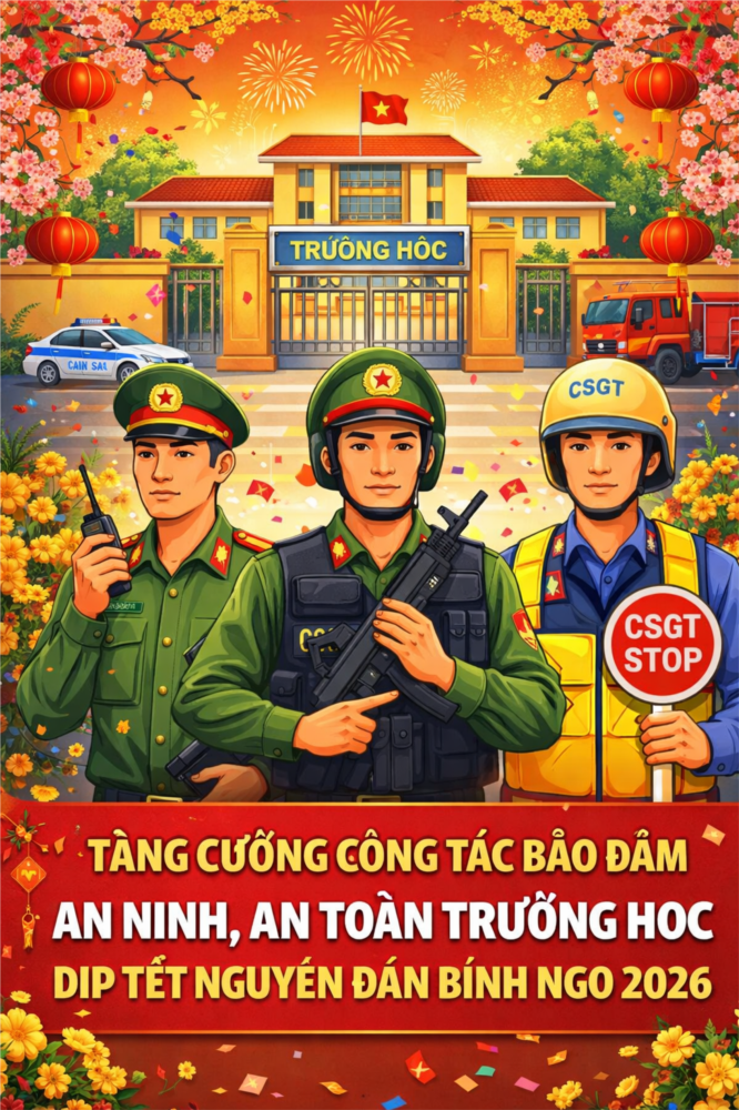 Tết Nguyên đán Bính Ngọ 2026 đang đến gần. Đây là thời điểm các hoạt động vui chơi, đi lại của người dân tăng cao, tiềm ẩn nhiều nguy cơ mất an ninh, an toàn, đặc biệt trong môi trường trường học.